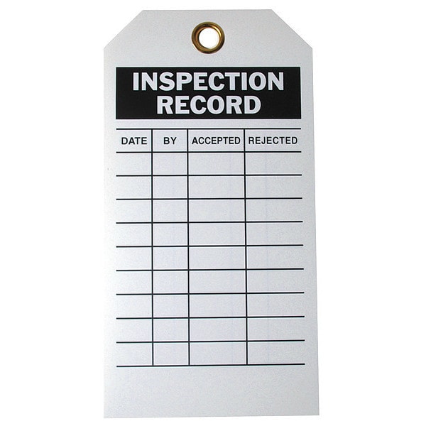 Tag, Inspection, Polyester, 3 in H x 5 3/4 in W, White, Rectangle, 10 PK
