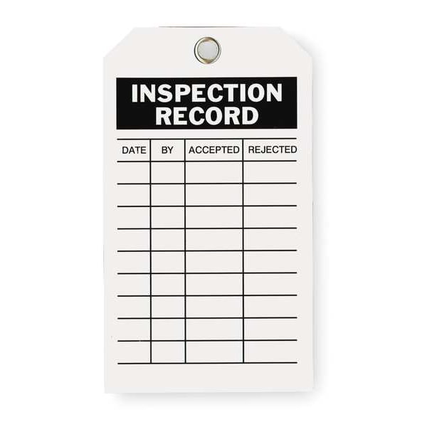 Tag, Inspection, Polyester, 7 in H x 4 in W, White, Rectangle, 10 PK