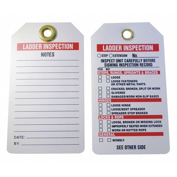 Tag, Ladder Inspection, Plastic, 5 3/4 in H x 3 1/4 in W, White, Rectangle, 25 PK