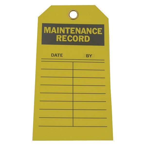 Tag, Maintenance, Polyester, 5 3/4 in H x 3 in W, Yellow, Rectangle, 10 PK