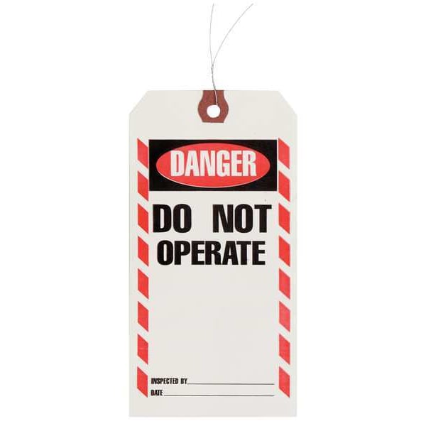 Tag, Compatible Tag Holder Mfr Part Number Not Applicable, Compatible Tag Insert Mfr Part Number Not Applicable, Fastener Attachment Length 11.9 in, Fastener Type Wire, Header Wording (Reverse Side) No Header, Header Wording Danger/Do Not Operate, Height 6 1/4 in, Indoor/Outdoor Usage Indoor, Lamination Type Not Laminated, Language English, Mounting Hole Reinforcement Type No Reinforcement, Mounting Hole Size 1/4 in, Number of Tags 1,000, Preprinted Images (Reverse Side) Not Applicable