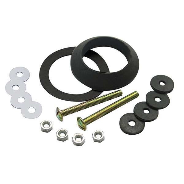 Tank to Bowl Gasket Kit, 16pcs, Closed Coupled, Material of Construction Rubber/Steel, Color/Finish BlackIncludes (4) Metal Washers, (4) Nuts, (2) 5/16 In. x 3 In. Bolts, (4) Rubber Washers, (1) Rubber Gasket, (1) Fiber Washer, Manufacturers Warranty Length 5 Years