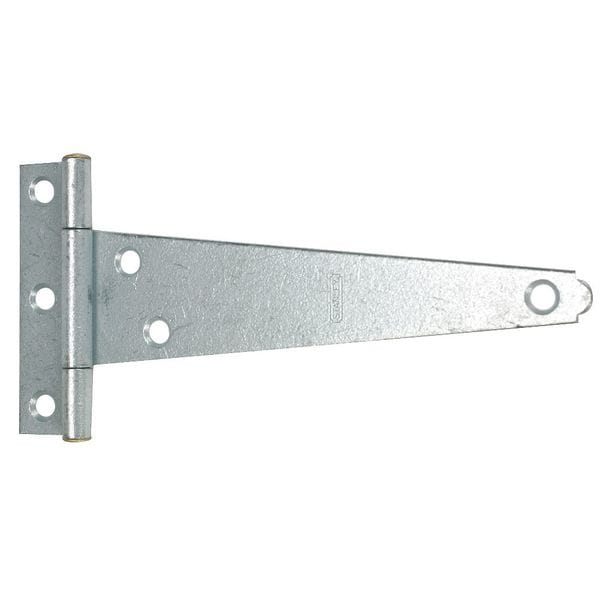 Tee Hinge, Steel Material, Galvanized Steel Finish, Not Applicable Load Capacity, With Holes, 4 Holes per Leaf, No Ligature Resistant, 270 Degrees Range of Motion, Orientation Non Handed, 6 in Door Leaf Height, 3 1/8 in Frame Leaf Height, 1 9/16 in Door Leaf Width, 1 1/16 in Frame Leaf Width, 0.068 in Door Leaf Thickness, 0.068 in Frame Leaf Thickness, Plain Bearing Type, Square Corners, Included Hardware, Full Surface Mounting, 1 1/16 in Overall Knuckle Height, Steel Pin Material