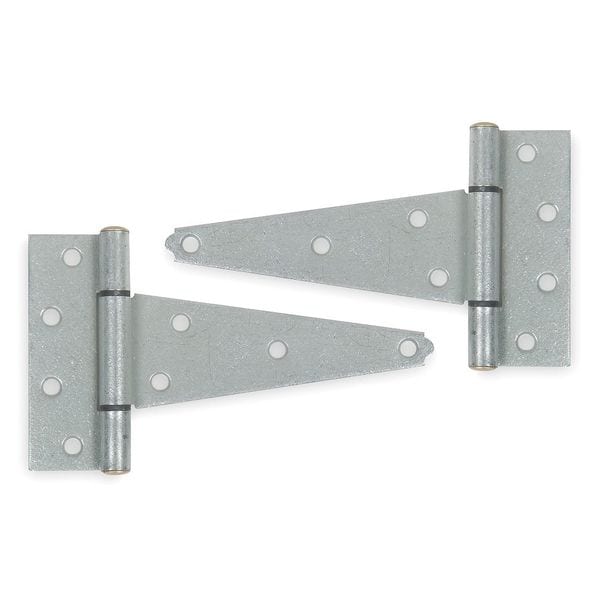 Tee Hinge, Steel Material, Galvanized Steel Finish, Not Applicable Load Capacity, With Holes, 4 Holes per Leaf, No Ligature Resistant, 270 Degrees Range of Motion, Orientation Non Handed, 6 in Door Leaf Height, 4 1/4 in Frame Leaf Height, 2 in Door Leaf Width, 1 13/16 in Frame Leaf Width, 0.104 in Door Leaf Thickness, 0.104 in Frame Leaf Thickness, Plain Bearing Type, Square Corners, Included Hardware, Full Surface Mounting, 1 13/16 in Overall Knuckle Height, Steel Pin Material