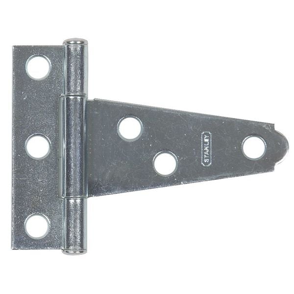 Tee Hinge, Steel Material, Zinc Finish, Not Applicable Load Capacity, With Holes, 3 Holes per Leaf, No Ligature Resistant, 270 Degrees Range of Motion, Orientation Non Handed, 2 in Door Leaf Height, 1 13/16 in Frame Leaf Height, 7/8 in Door Leaf Width, 21/32 in Frame Leaf Width, 0.048 in Door Leaf Thickness, 0.048 in Frame Leaf Thickness, Plain Bearing Type, Square Corners, Included Hardware, Full Surface Mounting, 11/16 in Overall Knuckle Height, Steel Pin Material, Nonremovable Pin Type