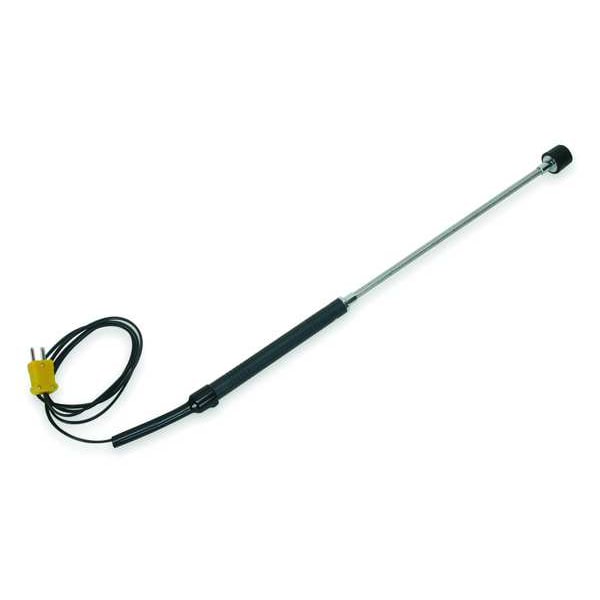 Surface Temperature Probe, Type K, Ungrounded, For Application Air, Surface, Mini Plug, Probe Size 9 in, Cable Length 3 ft 3 1/2 in, -58 Degrees to 932 Degrees F/-50 Degrees to 500 Degrees C, Thermocouple