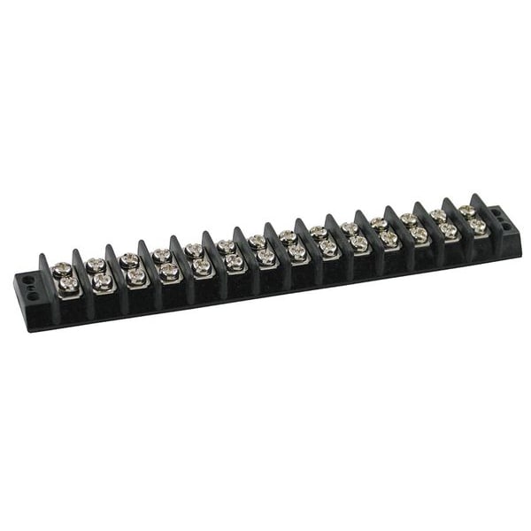 Barrier Terminal Strip, Barrier Style Not Applicable, Center Spacing 3/8 in, Current 15 A, For Minimum Wire Size 22 AWG, For Maximum Wire Size 14 AWG, Maximum Voltage 300 V, Number of Poles 14, Number of Rows 2, Overall Height 0.45 in, Overall Length 5.93 in, Overall Width 0.89 in, Compatible Manufacturer Model Number Not Applicable, Compatible with Product Type Power Distribution Blocks, Cover Included No, Housing Color Black, Housing Material Phenolic, Includes Not Applicable