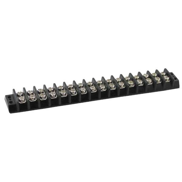 Barrier Terminal Strip, Barrier Style Not Applicable, Center Spacing 3/8 in, Current 15 A, For Minimum Wire Size 22 AWG, For Maximum Wire Size 14 AWG, Maximum Voltage 300 V, Number of Poles 16, Number of Rows 2, Overall Height 0.45 in, Overall Length 6.67 in, Overall Width 0.89 in, Compatible Manufacturer Model Number Not Applicable, Compatible with Product Type Power Distribution Blocks, Cover Included No, Housing Color Black, Housing Material Phenolic, Includes Not Applicable