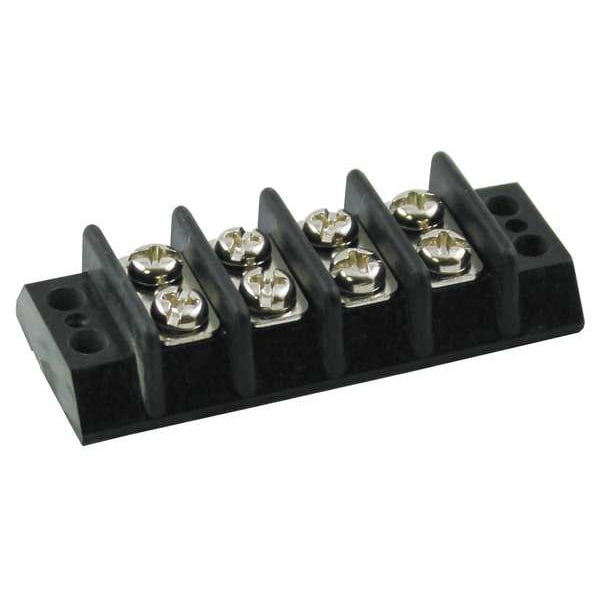 Terminal Strip, Barrier Style Not Applicable, Center Spacing 3/8 in, Current 15 A, For Minimum Wire Size 22 AWG, For Maximum Wire Size 14 AWG, Maximum Voltage 300 V AC, Number of Poles 4, Number of Rows 2, Overall Height 0.45 in, Overall Length 2.19 in, Overall Width 0.89 in, Compatible Manufacturer Model Number Not Applicable, Compatible with Product Type Power Distribution Blocks, Cover Included No, Housing Color Black, Housing Material Phenolic, Includes Not Applicable