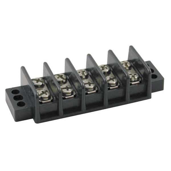 Barrier Terminal Strip, Barrier Style Not Applicable, Center Spacing 9/16 in, Current 30 A, For Minimum Wire Size 22 AWG, For Maximum Wire Size 10 AWG, Maximum Voltage 600 V, Number of Poles 5, Number of Rows 2, Overall Height 0.81 in, Overall Length 3.8 in, Overall Width 1.33 in, Compatible Manufacturer Model Number Not Applicable, Compatible with Product Type Power Distribution Blocks, Cover Included No, Housing Color Black, Housing Material Thermal Plastic, Includes Not Applicable