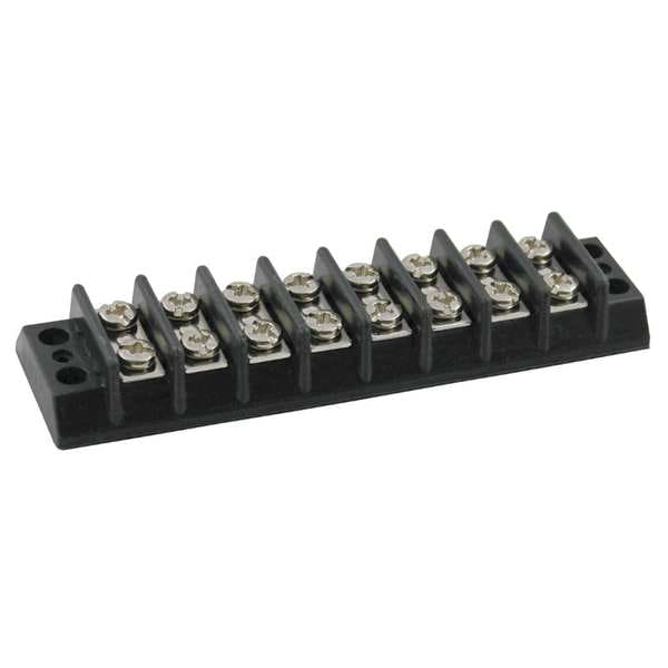 Barrier Terminal Strip, Barrier Style Not Applicable, Center Spacing 7/16 in, Current 20 A, For Minimum Wire Size 22 AWG, For Maximum Wire Size 12 AWG, Maximum Voltage 300 V, Number of Poles 8, Number of Rows 2, Overall Height 0.59 in, Overall Length 4.31 in, Overall Width 1.12 in, Compatible Manufacturer Model Number Not Applicable, Compatible with Product Type Power Distribution Blocks, Cover Included No, Housing Color Black, Housing Material Phenolic, Includes Not Applicable