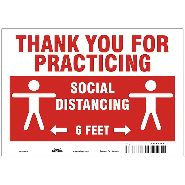 Thank You For Practicing Sign, Sign Subject Matter Social Distancing, Height 7 in, Width 10 in, Sign Material Polystyrene, Sign Mounting Style With Mounting Holes, Header Thank You For Practicing, Legend Social Distancing 6 Feet, Printed Language English