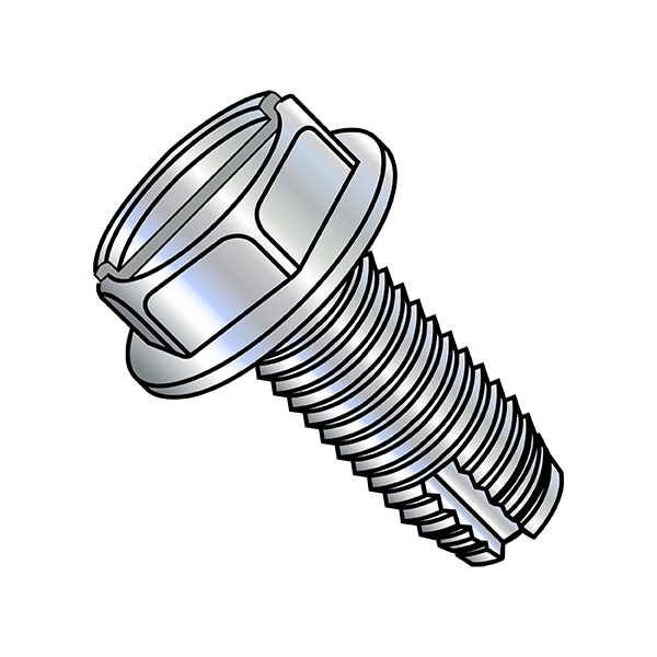 Thread Cutting Screw, #10-24 x 1 in, Zinc Plated Steel Hex Head Slotted Drive, 5000 PK