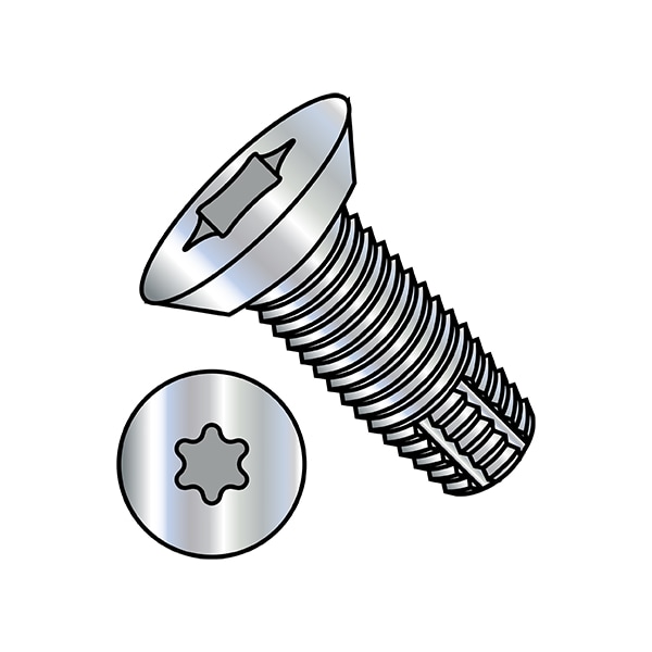 Thread Cutting Screw, #10-24 x 1/2 in, Zinc Plated Steel Flat Head Torx Drive, 10000 PK