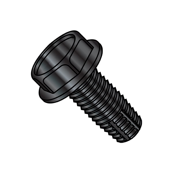 Thread Cutting Screw, 1/4"-20 x 1 in, Black Oxide Steel Hex Head Hex Drive, 2500 PK