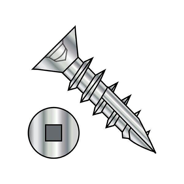 Thread Cutting Screw, Nickel Flat Head Square Drive, 9000 PK