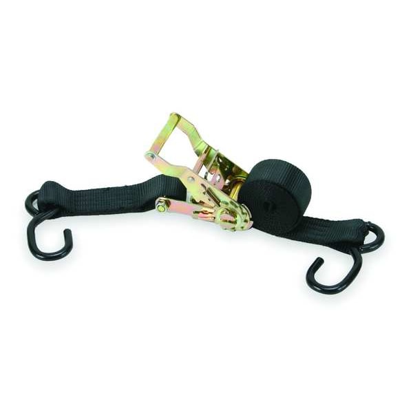 Tie Down Strap, Working Load Limit 1,000 lb, Color Black, End Type S-Hook, Tensile Strength 3,000 lb/in, Tie Down Material Polyester, Overall Width 1 1/2 in, Reinforcement Properties General Purpose, Fixed End Length 7 in, Overall Length 6 ft, Features Not Applicable, Standards WSTDA, Adjustment Type Ratchet, Manufacturers Warranty Length Not Applicable, End Material Steel, Product Type Tie Down Strap, Package Quantity 2