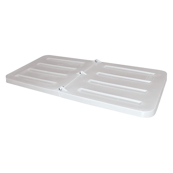 Hinged Lid for Tilt & Cube Trucks, For Truck Type Tilt Trucks, Closure Resting Lid, Color White, Fits Truck Size (Cu.-Ft.) 28.7 cu ft, Fits Truck Size (Cu.-Yd.) 1.1 cu yd, For Use with Series 1.1 CU, 1.1 UT, SD, Lid/Cover Material MDPE, Overall Height 2 1/4 in, Overall Length 69 in, Overall Width 31 1/2 in, Features Hinged in Middle
