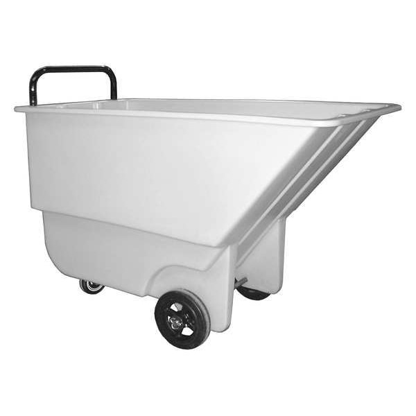 Tilt Truck, Cubic Foot Capacity 9 cu ft, Load Capacity 275 lb, Overall Length 48 in, Overall Width 26 in, Overall LxWxH 48 in x 26 in x 30 in, Overall Height 30 in, Optional Lid Mfg. Model No. 1/3 Lid, Container Material Polyethylene, Color White, Handle Type Raised, Mobility Option Manual, Caster/Wheel Configuration (1) Swivel, (2) Axle-Mounted, Caster/Wheel Mounting Location 3-Wheel, Caster Wheel Type Standard, Caster Wheel/Tread Material Polyurethane, Caster Wheel Dia. 4 in