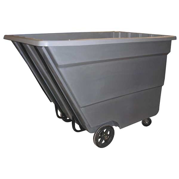 Tilt Truck, Cubic Foot Capacity 50 cu ft, Load Capacity 1,700 lb, Overall Length 74 in, Overall Width 40 in, Overall LxWxH 74 in x 40 in x 53 1/2 in, Overall Height 53 1/2 in, Optional Lid Mfg. Model No. 1.7 Lid, Container Material Polyethylene, Color Gray, Handle Type Raised, Mobility Option Manual, Caster/Wheel Configuration (2) Axle-Mounted, (2) Swivel, Caster/Wheel Mounting Location Standard, Caster Wheel Type Standard, Caster Wheel/Tread Material Rubber, Caster Wheel Dia. 6 in