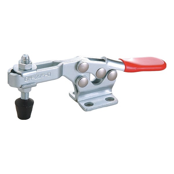 Toggle Clamp, Base Mounting Style Flange, Handle Orientation Horizontal, Holding Capacity - Maximum 500 lbf, Arm Style U-Bar, Tip Material Neoprene, Clamp Arm Opening Angle 90 Degrees , Arm Length 2.82 in, Height Under Arm 1.37 in, Includes Locking Handle No, Accommodates Workpiece Variation No, Application Assembly, Checking Fixtures, Closures, Woodworking, Body Material Steel, Clamping Force 500 lb, Fastener Thread Size 1/4 in (orM6), Handle Color Red, Handle Material Plastic