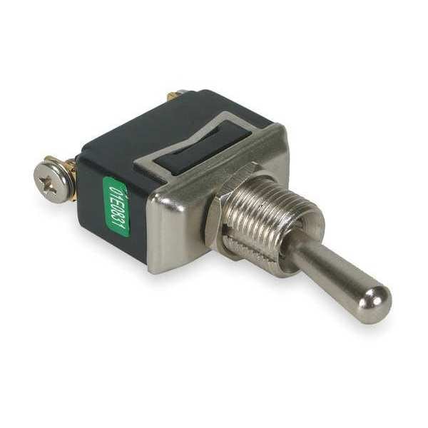Toggle Switch, Contact Form SPST, Number of Connections 2, Switch Function On/Off, AC Contact Rating 18 A @ 125 V, 15 A @ 277 V, 20 A @ 125 V, HP 2 hp, Terminals Screw, Mounting Hole 0.50 in dia, DC Contact Rating Not Applicable, Actuator Style Bat, Actuator Length 0.73 in, Stem Length 0.47 in, Stem Dia. and Thread Size M12 x 1-6g, Operating Temp. Range 185 Degrees F, Standards cRUus, Includes Not Applicable