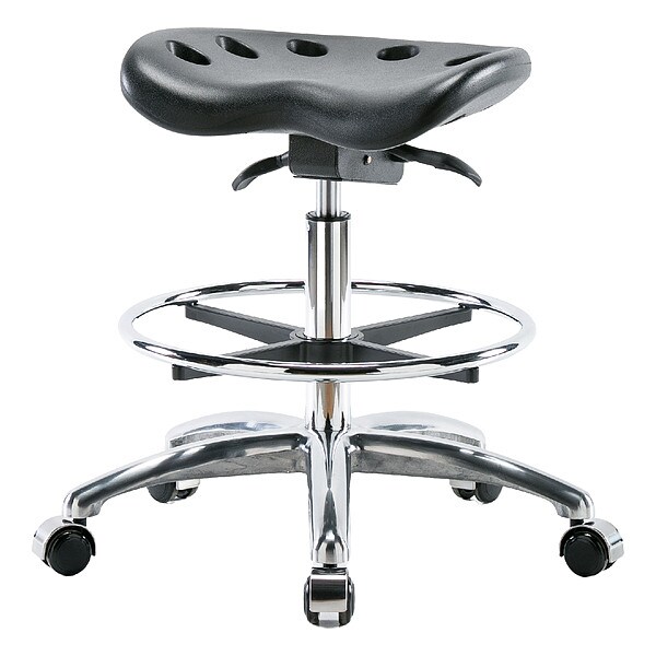 Tractor Stool, Weight Capacity 300 lb, Seat Height Range 20 in to 28 in, Seat Depth 14 in, Seat Width 17 in, Color Black, Material Polyurethane, Base Polished Cast Aluminum, Features Dual Wheel, Locking Seat Tilt, Non-Marring Casters, Self-Braking, Includes Not Applicable, Standards ANSI/BIFMA, CAL 117
