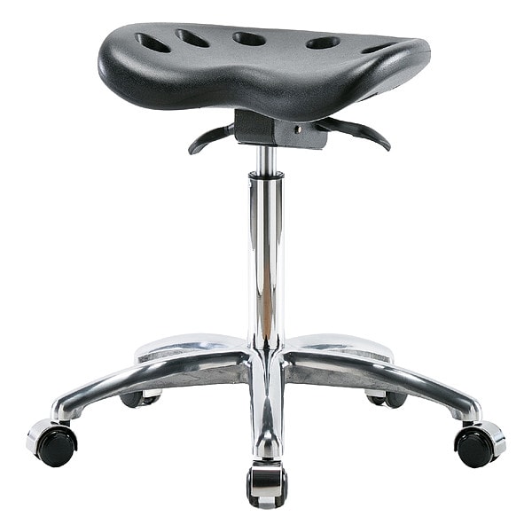Tractor Stool, Weight Capacity 300 lb, Seat Height Range 20 in to 28 in, Seat Depth 14 in, Seat Width 17 in, Color Black, Material Polyurethane, Base Polished Cast Aluminum, Features Dual Wheel, Locking Seat Tilt, Non-Marring Casters, Self-Braking, Includes Not Applicable, Standards ANSI/BIFMA, CAL 117