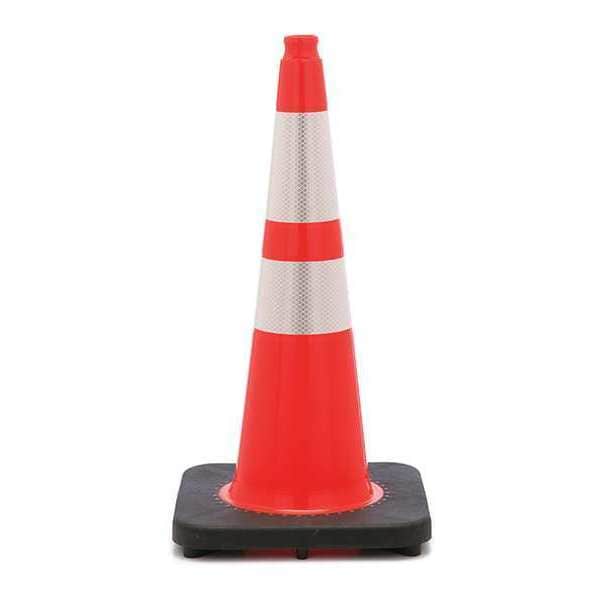 Traffic Cone with Bands, Base Color Black, Product Type Traffic Cone with Bands, Cone Height 28 in, Cone Color Orange, Includes Reflective Striping Yes, Cone Material PVC, Legend Blank, Base Length 13 7/8 in, Base Width 13 7/8 in, Number of Reflective Stripes 2, Height of Reflective Stripe 4 1/2 in, 6 1/2 in, Recessed Collar Yes, Reflective Grade High-Intensity Prismatic, Collapsible No, Base Material PVC, Cone Weight 10 lb, Base Height 1 1/2 in, Base Shape Square, Base Weight 10 lb