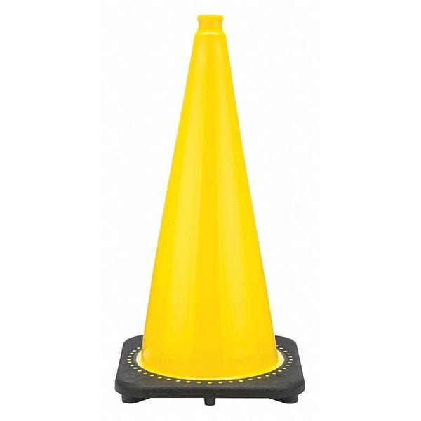 Traffic Cone, Base Color Black, Product Type Traffic Cone, Cone Height 28 in, Cone Color Yellow, Includes Reflective Striping No, Cone Material PVC, Legend Blank, Base Length 13 7/8 in, Base Width 13 7/8 in, Number of Reflective Stripes 0, Recessed Collar No, Reflective Grade Non-Reflective, Collapsible No, Base Material PVC, Cone Weight 7 lb, Base Height 1 1/2 in, Base Shape Square, Base Weight 7 lb, Cone Outside Diameter - Bottom 10 in, Cone Style Standard, Cone Wall Thickness 0.15 in