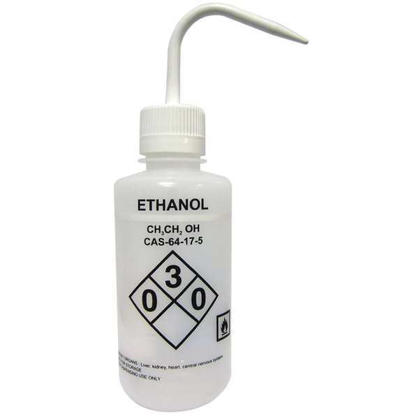 Wash Bottle, Capacity - Metric 1 L, Imprinting Ethanol, Capacity - English 32 fl oz, Basic Material Plastic, Body Material LDPE, Vented/Nonvented Vented, Closure Material Polypropylene, Spout Style Standard Spout, Product Type Wash Bottle, Body Color White, Body Diameter 93.2 mm, Closure Color White, Autoclavable No, Closure Included Yes, Mouth Size Narrow, Clarity Translucent, Numbers of Bottles Included 4, Standards Not Applicable, Package Quantity 4