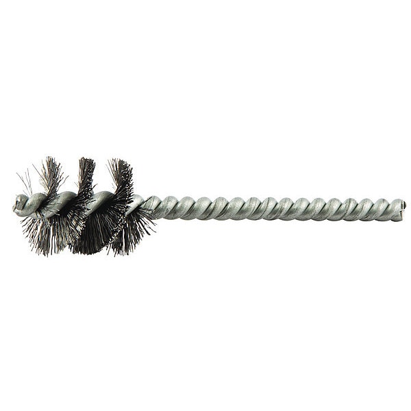 Single Spiral Tube Brush, Bristle Material Steel, Brush Diameter 0.75 in, Brush Length 1 in, Overall Length 3 1/2 in