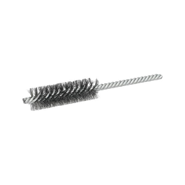 Tube Brush, Product Type Double Spiral Tube Brush, Stem Style Double, Brush Material Steel, Brush Dia. 3/4 in, Compatible Tube Outer Diameter 3/4 in, Stem Diameter 1/4 in, Brush Length 2 1/2 in, Wire Dia. 0.006 in, Overall Length 5 1/2 in, Compatible Tool Type Drill, Drill Press, Operating Speed - Maximum 2,000 RPM, Series By Norton