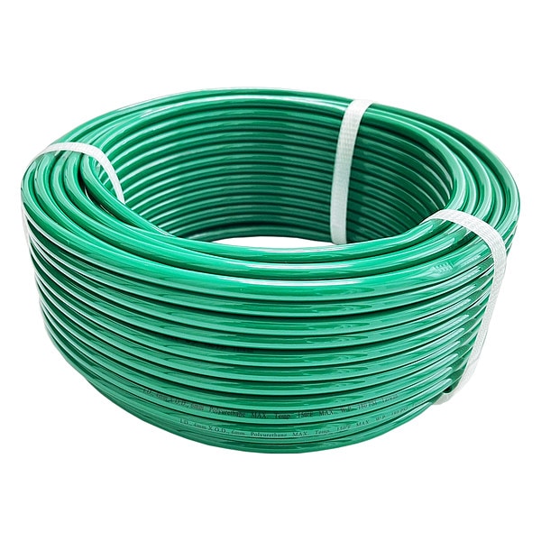 Tubing, Application Air, Water, Color Green, Food Application Not Applicable, Hardness Shore A 98, Inside Diameter 4 mm, Jacket Color No Jacket, Jacket Material No Jacket, Material Polyurethane, Material Trade Name Not Applicable, Material Trade Number Not Applicable, Maximum Operating Pressure 180 psi @ 73 Degrees F, Maximum Operating Temperature 150 Degrees F, Maximum Vacuum Pressure Not Applicable, Outside Diameter 6 mm, Overall Length 100 ft, Peristaltic Pump Compatible No