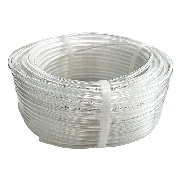 Tubing, Application Air, Water, Color Beige, Food Application Not Applicable, Hardness Shore A 98, Inside Diameter 5/32 in, Jacket Color No Jacket, Jacket Material No Jacket, Material Polyurethane, Material Trade Name Not Applicable, Material Trade Number Not Applicable, Maximum Operating Pressure 180 psi @ 73 Degrees F, Maximum Operating Temperature 150 Degrees F, Maximum Vacuum Pressure Not Applicable, Outside Diameter 1/4 in, Overall Length 100 ft, Peristaltic Pump Compatible No