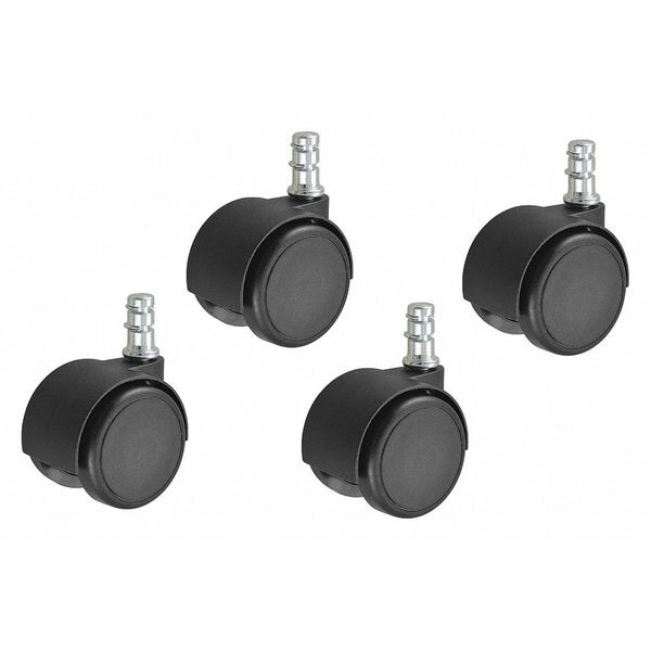 Stem Caster Kit, Swivel Caster, 440 lb Load Rating, 300 to 999 lb, 2 in Wheel Dia., 2 in Wheel Width, Nylon Wheel/Tread Material, 2 9/32 in Mounting Height, Plain, 7/16 in x 7/8 in Caster Stem Size, Friction Ring, Steel Caster Frame Material, Nylon Frame Finish, Yes Non-Marking, 2 Number of Wheels, Package Quantity 4