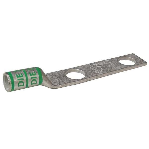 Two-Hole Lug Compression Connector, Barrel Size Long, Color Code Green, Die Code 37, Tongue Angle Straight, Tongue Width 0.67 in, For Conductor Material Copper, For Stud Size 5/16 in, For Stranded Copper Wire Size - Minimum 1 AWG, For Stranded Copper Wire Size - Maximum 1 AWG, Inspection Hole No, Hole Center to Center 0.88 in, Material Copper, Maximum Operating Temperature 300 Degrees F, Maximum Voltage 600 V AC, Termination Style Crimp, Seam Style Seamless, Standards CSA Certified, UL Listed