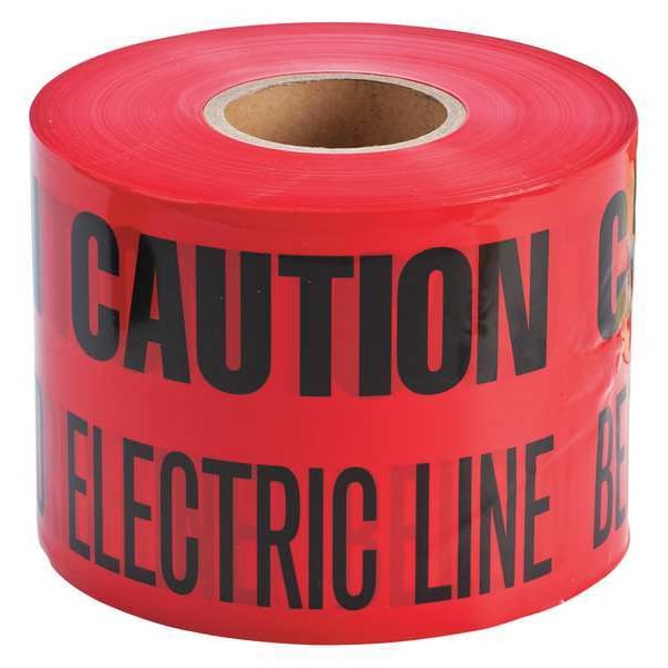 Underground Marking Tape, Caution Buried Electric Line Below, Red, 6 in Wide x 1,000 ft Length