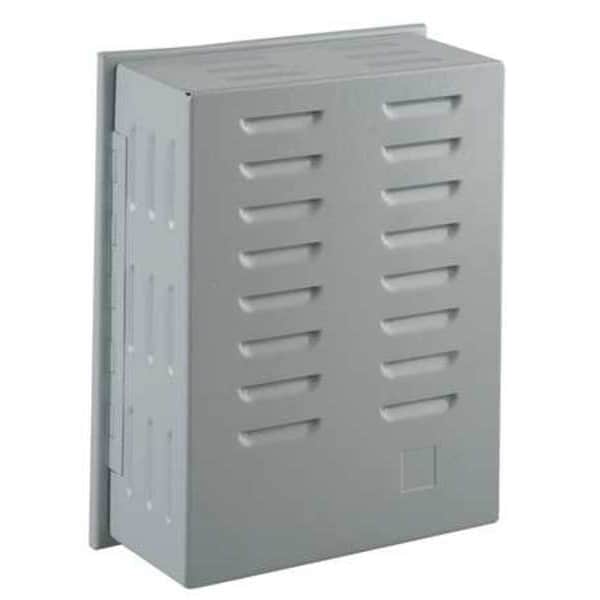 Universal Thermostat Guard, Base Type Ring Base, Solid Base, Cover Type Hinged, Guard Construction Single Wall, Inside Depth 3 in, Inside Height 8 5/8 in, Inside Width 6 3/4 in, Material Steel, Mounting Direction Horizontal or Vertical, Outside Depth 3 5/16 in, Outside Height 9 3/16 in, Outside Width 7 1/4 in, Thermostat Guard Cover Color Off-White, Base Gauge 36 ga, Cover Gauge 36 ga, Finish Powder Coated, Includes Mounting Hardware, Includes Baseplate Yes, Number of Keys 2
