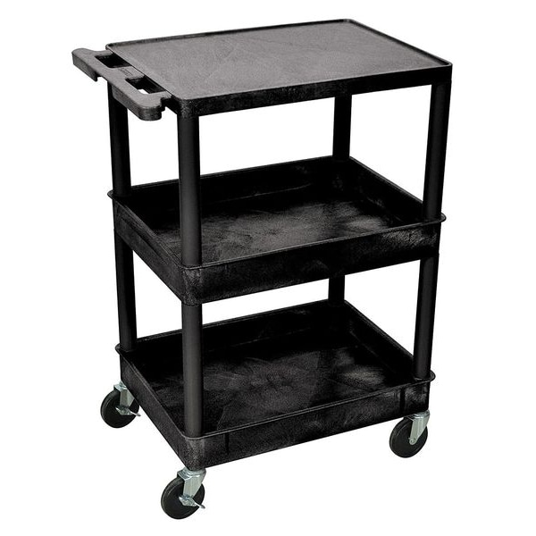 Utility Cart with Deep Lipped & Lipped Plastic Shelves, 300 lb Load Capacity, 3 Shelves, 24 in L