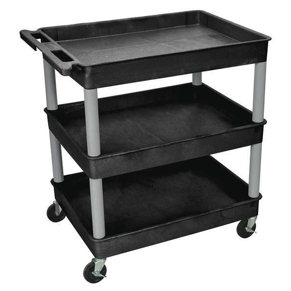 Utility Cart with Deep Lipped Plastic Shelves, 400 lb Load Capacity, 3 Shelves, 32 in L, 24 in W