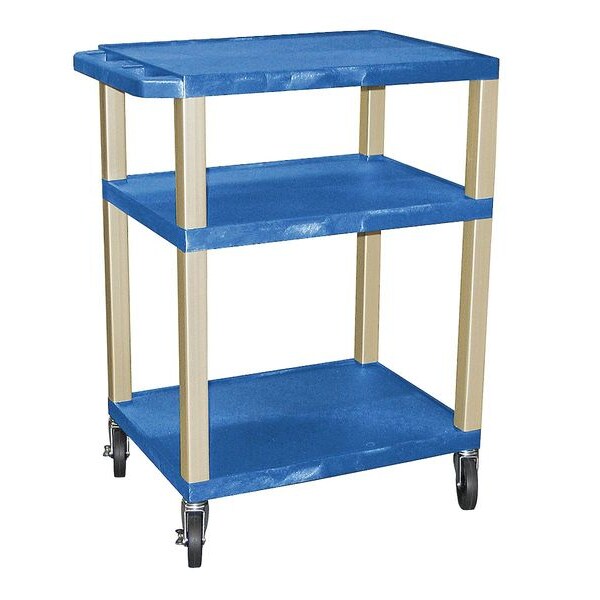 Utility Cart with Lipped Plastic Shelves, Thermoplastic Resin, 300 lb Load Capacity, 3 Shelves