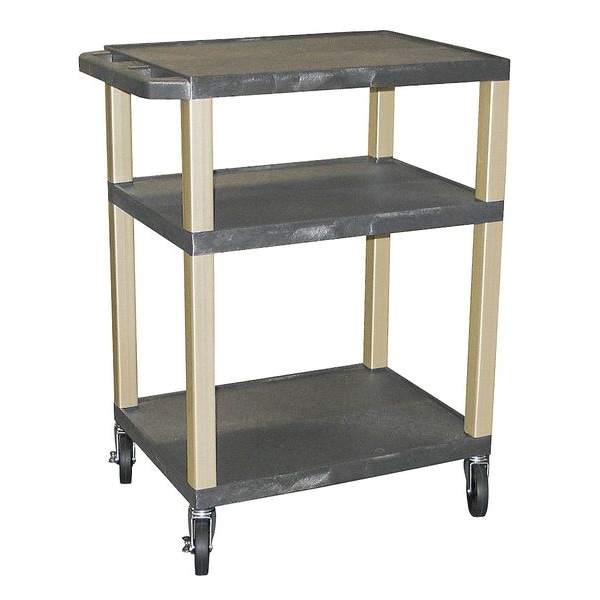 Utility Cart with Lipped Plastic Shelves, Thermoplastic Resin, 300 lb Load Capacity, 3 Shelves