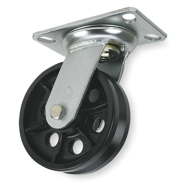 Swivel, Plate Caster, Load Rating 800 lb, Swivel Lock Type No Lock Included, Wheel Dia. 4 in, Wheel Width 2 in, Wheel/Tread Material Iron, Wheel Core Material Iron, Non-Marking Yes, Number of Wheels 1, Caster Brake Type No Brake, Tread Shape V-Groove