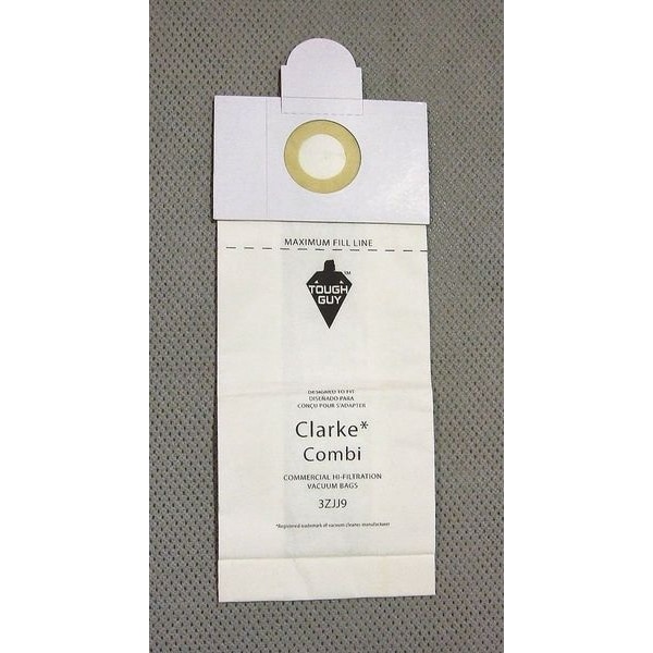 Vacuum Bag, For Vacuum Type Upright Vacuum, Fits Vacuum Brand Clarke, Hawk Enterprises, Nacecare, Fits Vacuum Models DM1400, DM1800, UVT14, UVT18, Bag Filtration Type Standard, Filter Efficiency Up to 99 Percent at 0.3 microns, Bag Material Paper, Ply Count 2-Ply, Bag Pickup Type Dry, Bag Reusability Disposable, Height 1/2 in, Length 14 1/2 in, Width/Diameter 6 in, Package Quantity 10