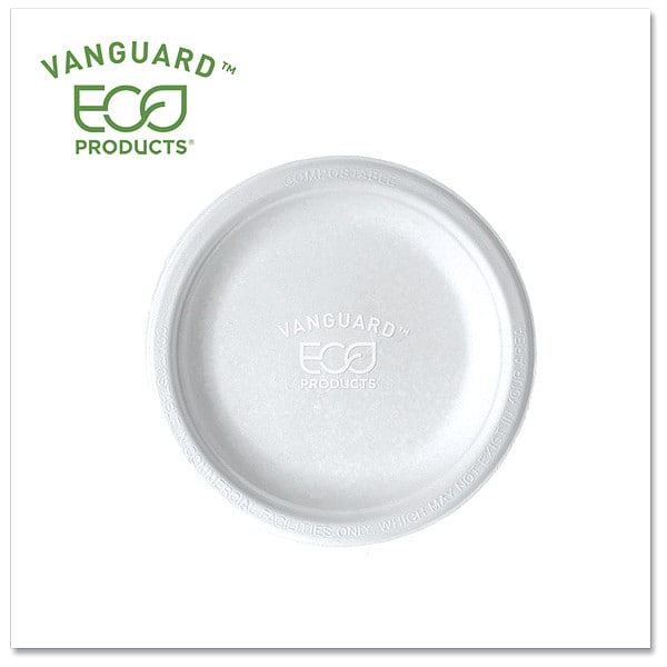 Vanguard Renewable and Compostable Sugarcane Plates, 6" dia, White, PK1000