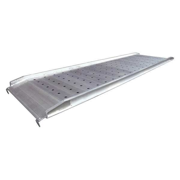 Aluminum Walk Ramp, Hook End, Load Capacity 1400 Lb., Service Range 6 to 48 In., Overall Length 12 Ft., Overall Width 38 In., Nonskid Surface, Unique punched design allows debris to fall through providing better traction in adverse conditions, Max. Service Height 48 In., 3 3/4 In