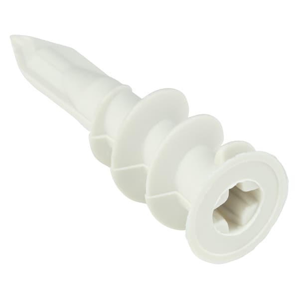 Wall Anchor, System of Measurement Inch, Anchor Length 1 11/16 in, Anchor Diameter Not Applicable, Thread Size #6 to #8, Thread Length Not Applicable, Drive Type Phillips, Flange Style Flush, Head Type Round, Includes Screw Yes, Screw Size Included #8, Screw Length Included 1 1/4 in, Compatible Screw Size #8, Compatible Screw Length 1 1/4 in, Color White, Finish Plain, Material Nylon, Compatible Material Drywall, Drill Bit Size Not Applicable, Minimum Material Thickness Not Applicable