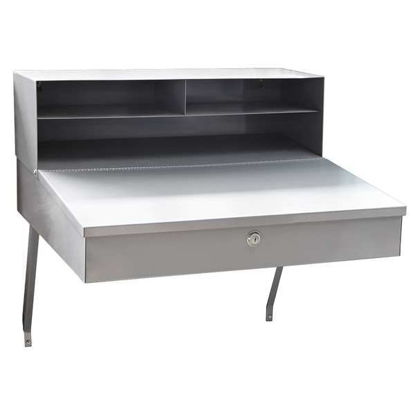 Stationary Wall Mount Desk, Overall Height 11 7/8 in, Overall Width 23 1/4 in, Open Depth 24 1/4 in, Color Gray, Locking Yes, Self-Closing No, Writing Surface Slope 4 Degrees , Product Type Stationary Wall Mount Desk, Drawer Depth 22 3/8 in, Drawer Height 3 7/8 in, Drawer Width 24 in, Finish Powder Coated, Frame Gauge 16 ga, Includes Mounting Hardware Yes, Number of Keys 2, Number of Locking Drawers 1, Number of Storage Compartments 3, Work Surface Depth 13 3/8 in, Work Surface Width 24 3/8 in