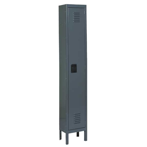 Wardrobe Locker, Audit Trail Storage None, Frame Assembled Unassembled, Number of Tiers 1, Number of Units Wide 1, Door Type Louvered, Frame Material Thickness 16 ga, Includes Number Plates No, Locker Color Gray, Lock Type Padlock Hasp, Overall Depth 12 in, Overall Height 78 in, Overall Width 12 in, Antimicrobial No, Base/Leg Height 6 in, Door Locking Points 3, Handle Type Recessed Lift, Includes Hanging Rod Yes, Includes Slope Top Panel No, Locker Finish Powder Coated, Locker Material Steel